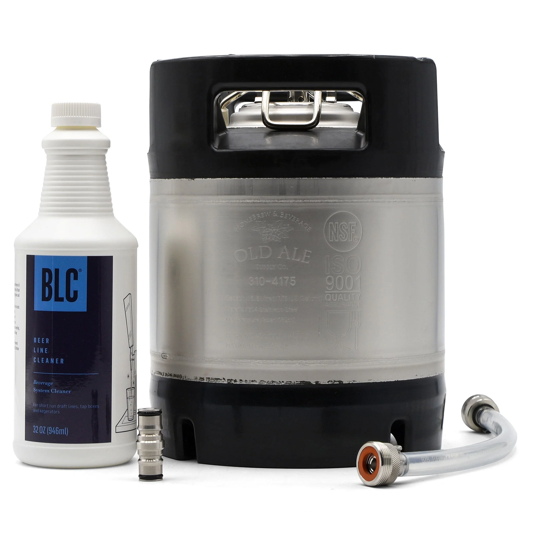 The Fine Line Draft System Cleaning kit works by allowing you to daisy-chain your serving lines together with a unique set of jumpers. Then fill the mini keg with Beer Line Cleaner and, using your existing CO2 system, force the cleaner through the lines. Just like the pros do.