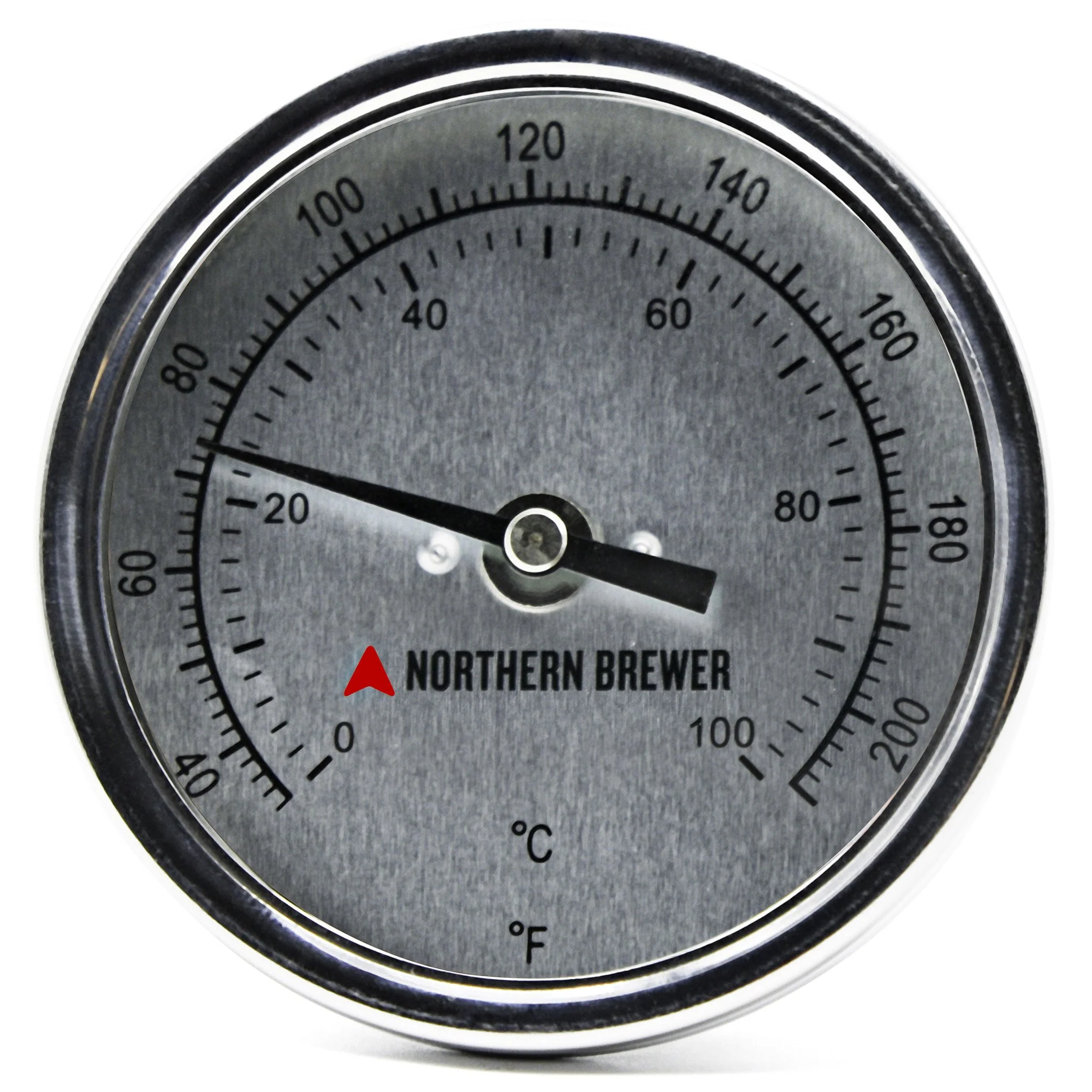 Includes our EZ-Clean thermowell for weldless mounting to pre-drilled kettles (requires 7/8" hole). Reads in Fahrenheit and Celsius. Calibration screw on back of face. Range: 32° to 210° F, in 2° increments, 0° to 100° C, in 2° increments.
